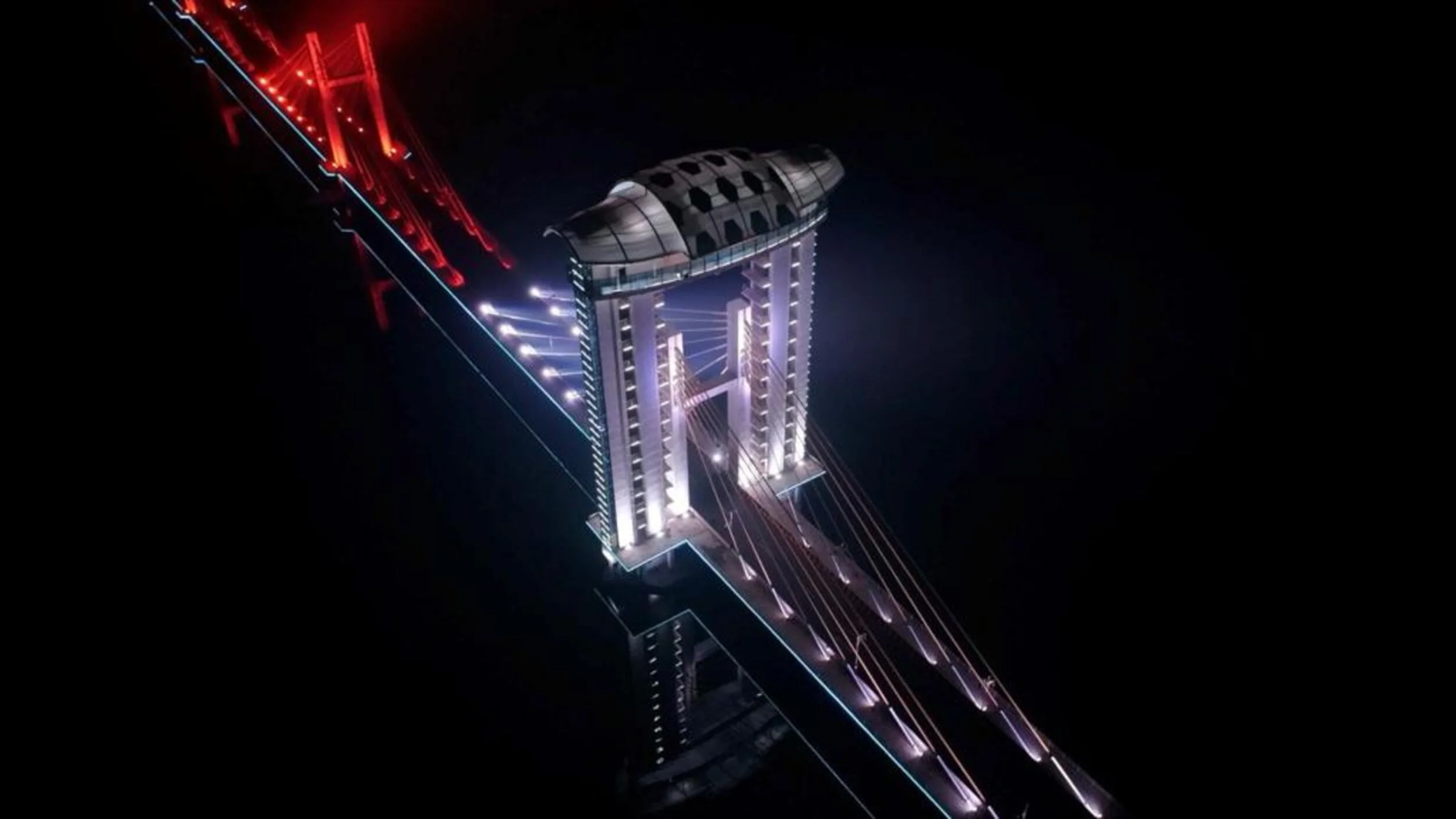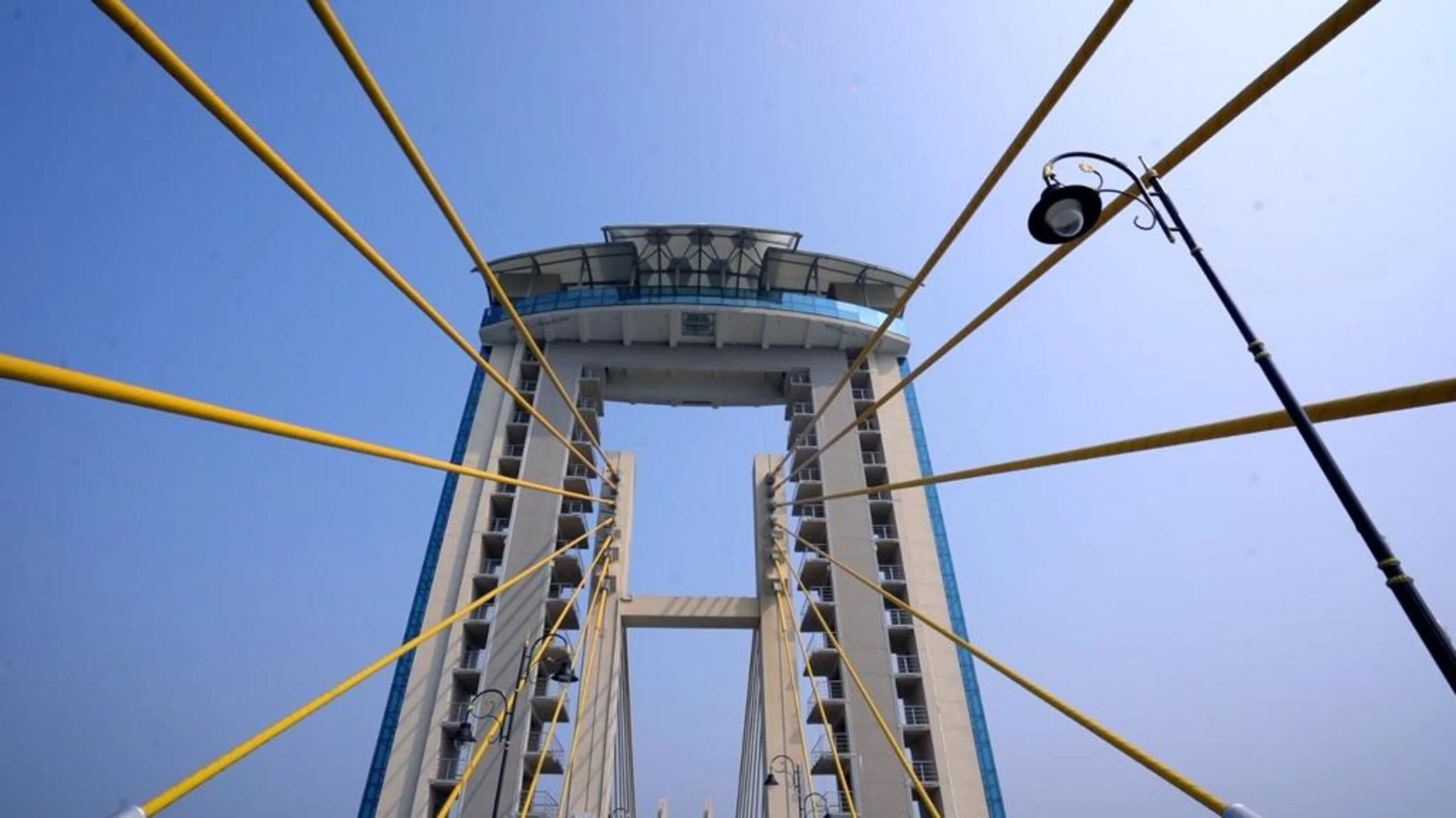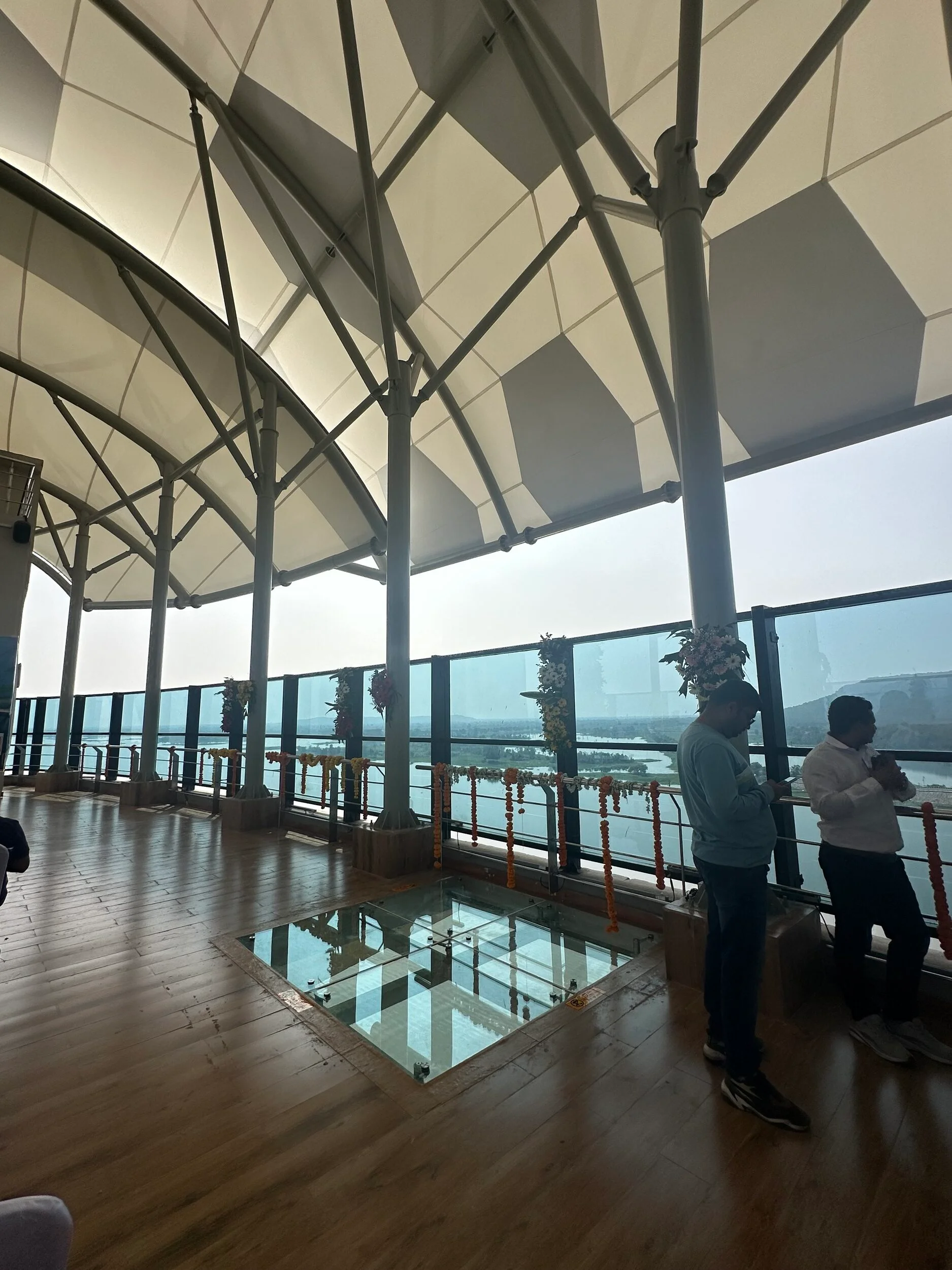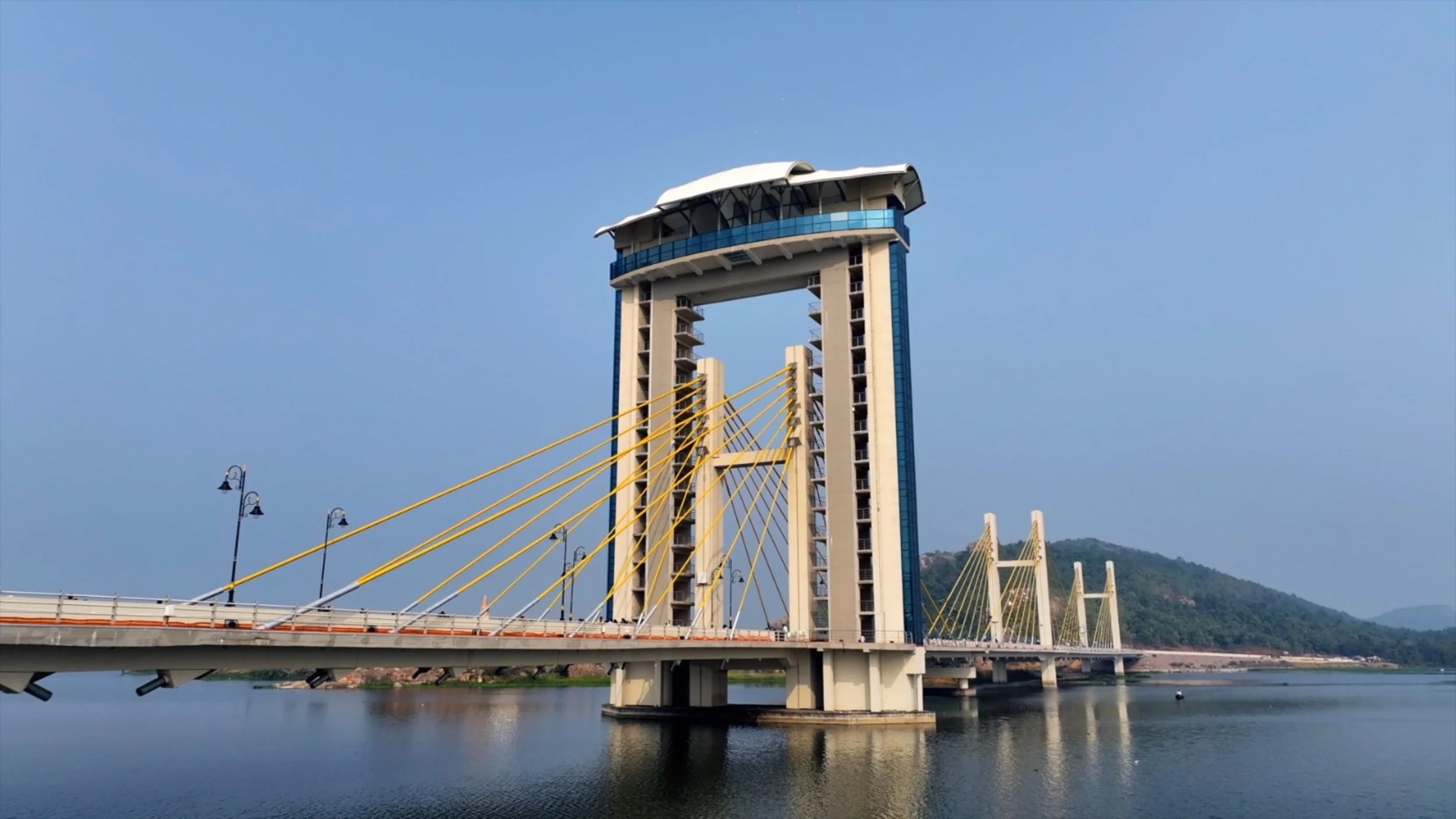 As part of the Ambhora Waterfront Development and Temple Complex in Nagpur District, the country’s first modern Sky Gallery soars 45 meters above a cable-stayed bridge. This innovative structure features an expansive viewing deck, with transparent glass sections embedded into the flooring, providing visitors with a breathtaking experience of the river below.